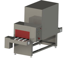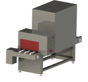 Túneis de encolhimento para caixas de papelão filmadas, com ajustes de velocidade e temperatura de acordo com cada tipo de produto.